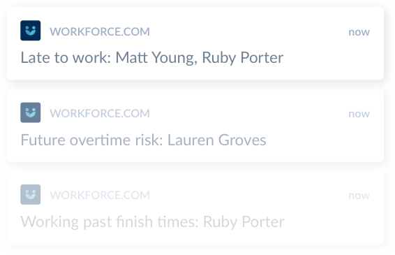 Track absenteeism, monitor breaks, and measure employee satisfaction for all teams and locations with instant notifications and a live time clock feed. Real-time visibility like this helps you identify where and when scheduling issues are hurting frontline productivity and attendance.